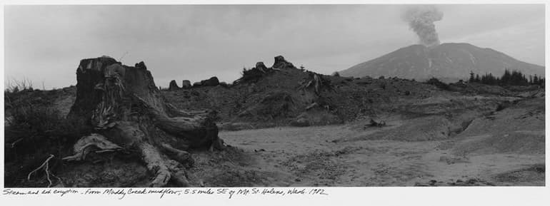 Steam and ash eruption, from Muddy Creek mudflow, 5.5 miles southeast of Mount St. Helens, 1982. Frank Gohlke (American, born 1942). Gelatin silver print; 17 3/4 x 27 1/2 in. © Frank Gohlke / courtesy: Howard Greenberg Gallery