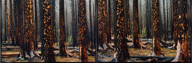 Early Spring (Peeling Bark in Rain) (detail), 2008. Laura McPhee (American, born 1958). Digital ink print mounted to aluminum; left panel: 155.1 x 197.8 x 5.1 cm; right panel: 155.1 x 197.8 x 5.1 cm. The Cleveland Museum of Art, Gift of Mr. and Mrs. Alfred M. Rankin Jr. 2011.218. © Laura McPhee.