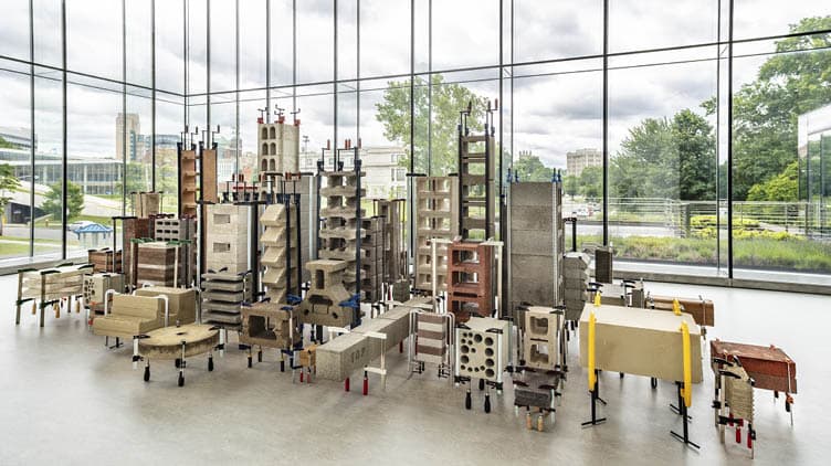 A new iteration of Azambuja’s ongoing series titled Brutalismo—referring to brutalism, the austere midcentury architectural style—this work is composed of materials gathered in and around Cleveland, emphasizing the sprawling city’s sometimes overlooked physical makeup. Called Brutalismo–Cleveland, the sculptures expose and celebrate the rich legacy of brutalist architecture in Cleveland and northeast Ohio, connecting the international movement’s signature aesthetics with a more regional history through the use of locally sourced materials. Continuing her investigation of spaces designed by eminent male architects, Lambri created a suite of photographs depicting architectural elements of the CMA that serve as building blocks for her compositions. The series focuses on the museum’s iconic, striped granite wing designed by Marcel Breuer in 1971. Lambri’s signature light-filled prints offer painterly impressions of often unnoticed details and surfaces of rigid modern architecture. An accompanying installation by Lambri is on view in the CMA’s Ingalls Library in the general reading area.