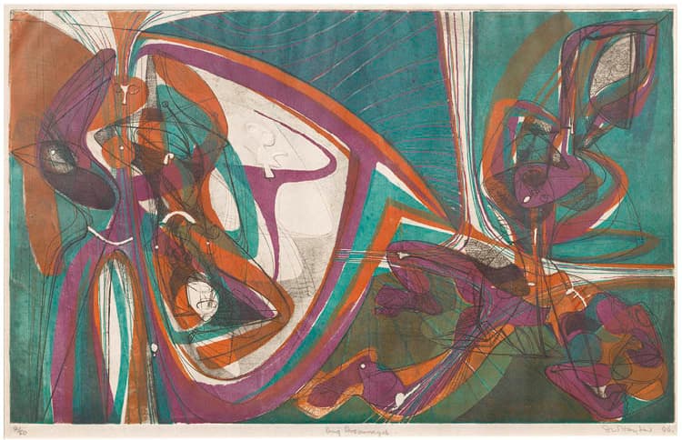 Drawn from the holdings of the Cleveland Museum of Art and local collectors, Cutting Edge: Modern Prints from Atelier 17 showcases approximately 50 works from the influential avant-garde studio. Indeed, no other workshop was more important for the development of modern printmaking than Atelier 17. Founded in 1927 by former chemist Stanley William Hayter, it operated for several decades as a creative laboratory where hundreds of artists eagerly explored and unselfishly shared new discoveries. Among the myriad techniques developed at Atelier 17 were novel ways to execute multicolor printing and generate unusual textured patterns from unconventional materials. Attendees worked independently but could also enroll in courses to learn specific processes. Although no particular artistic style was proscribed, participants were encouraged to emphasize spontaneity and improvisation instead of rigid preconception. “This workshop is an experimental shop,” Hayter explained. “People who come here are people whose curiosity is to find new methods. . . . This is not a school of art; each pursues his own necessity.”
