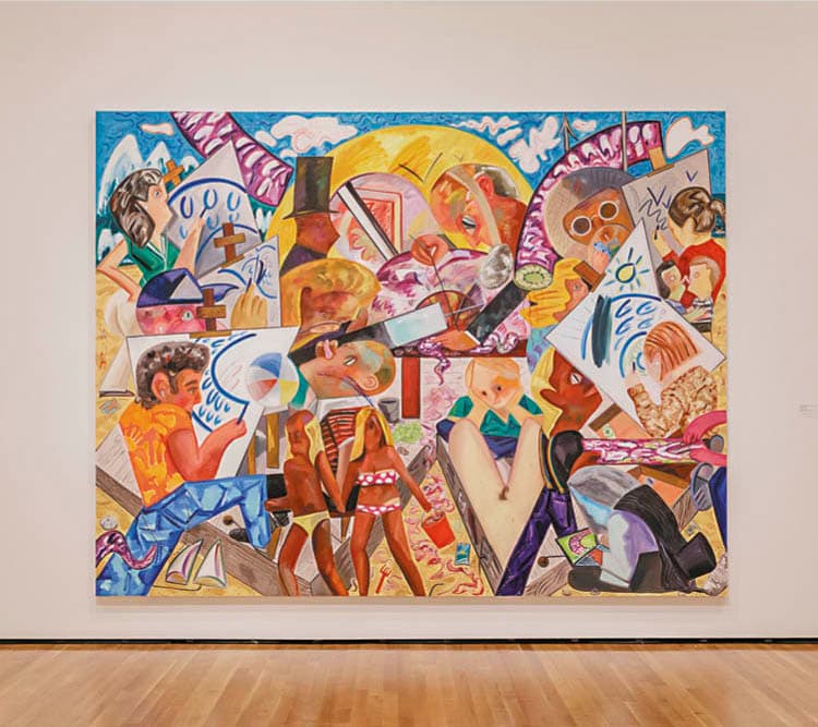 An internationally regarded painter, Schutz is best known for her dynamic figurative works that seek to explore humanity and its many guises, whether comic or violent in nature. Her intricate compositions are marked by vivid color combinations and dynamic brushwork, pointing to her deep interest in the history of painting and its future possibilities. Historical references guide her work, with allusions to artists such as Alice Neel, Théodore Géricault, and Max Beckmann.