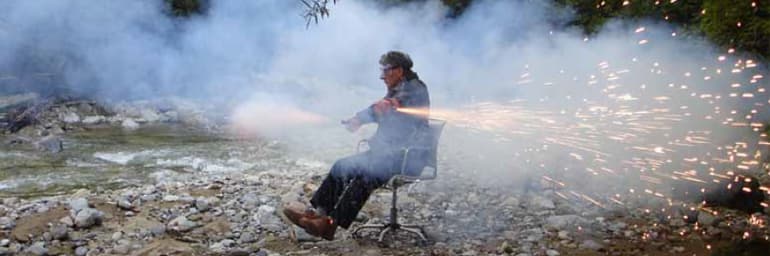 Roman Signer experiments with everyday objects like chairs, canoes, tables, tents or remote-controlled helicopters and relates them to earth, wind, gunpowder, fire, and water in unexpected ways. What is true for chemistry and physics is also true for Signer’s practice: that from the combination of basic elements something completely new can emerge and that every action has a reaction. All of his sculptures and films are thoughtfully conceived works of art, but they are also radical experiments the outcome of which we (and the artist) can only guess at before they have come to an end. Rarely seen in the United States, Roman Signer is thought by many to be Switzerland’s most important artist and undoubtedly one of the major figures in international contemporary art since the early 1970s. The artist will present a selection of his films, with commentary.