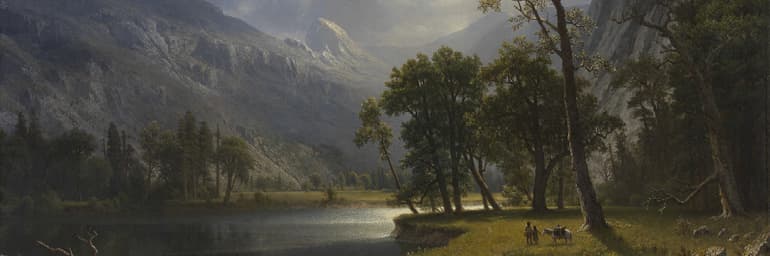 Yosemite Valley, 1866. Albert Bierstadt (American, 1830–1902). Oil on canvas on panel-back stretcher; 135.3 x 181 x 15.6 cm. The Cleveland Museum of Art, Hinman B. Hurlbut Collection, 221.1922