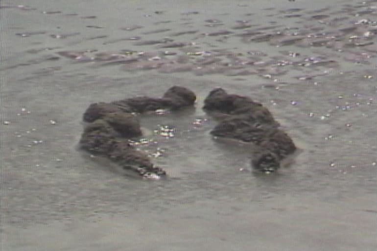 Ochún meditates on Mendieta’s experiences as an immigrant. In 1961, at age 12, she was separated from her family in Havana and sent to an orphanage in Iowa as part of a program for exiled children. The video features a Silueta sculpted from earth off the coast of Key Biscayne, on Florida’s southern tip. Water, which dominates the video’s views and soundtrack, is presented as a uniting element that connects both places, evoking the artist’s hope to capture “the transition between my homeland and my new home . . . reclaiming my roots and becoming one with nature.”