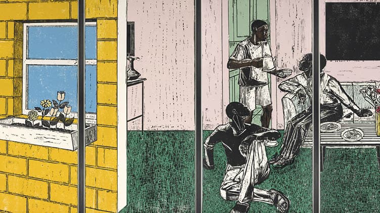 The show features a monumental, 12-panel woodcut print from 1998–99 that unfolds cinematically, taking the viewer from an aerial perspective of an urban grid into the intimate setting of a home. An array of drawings of smaller scale, spanning the arc of Marshall’s career, will complement the woodcut and emphasize the seminal artist’s ongoing investigations of private and public space. This exhibition is organized on the occasion of the inaugural iteration of FRONT International: Cleveland Triennial of Contemporary Art.