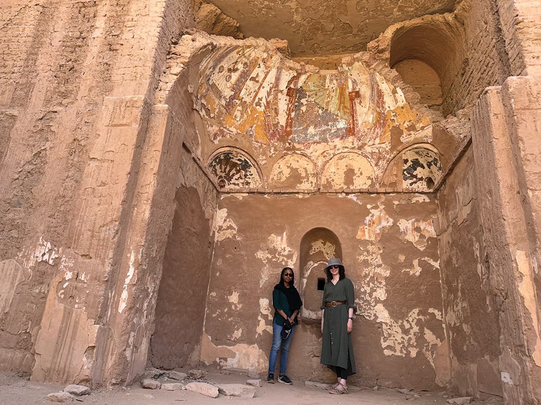 Saint Simeon’s Monastery Curator Kristen Windmuller-Luna (right) and predoctoral fellow Helina Gebremedhen at the 10th-century Coptic Orthodox site, June 2023