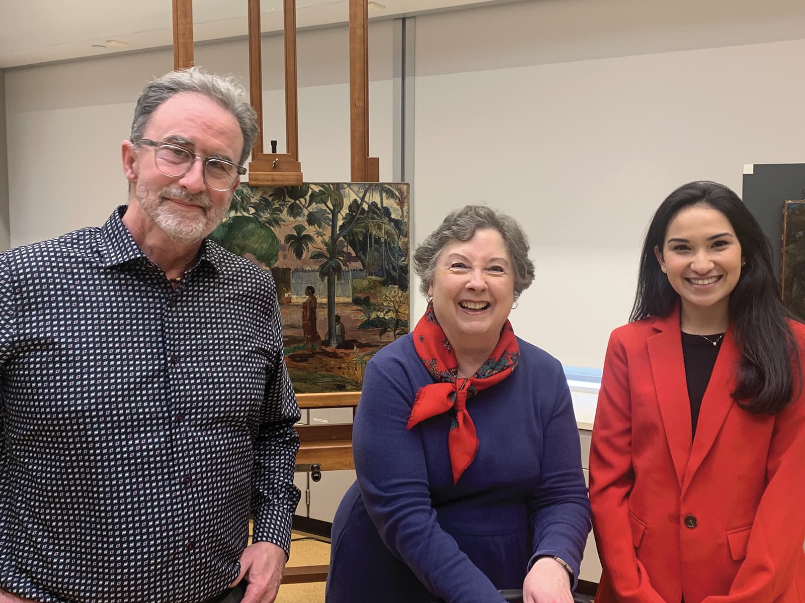 Julie Kurtock (center) with Dean Yoder, senior conservator of paintings and head of paintings conservation (left), and Julianna Ly, assistant conservator of paintings (right)