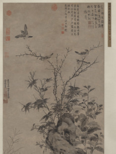 This leaf presents a rising promontory in the near distance, whose base is hidden by a dense grove of barren, autumnal trees. A gentle incline emerges from the lower right, with a small path leading to its summit, where a gentleman is sheltered from the wind by two pines. This promontory resembles Guangming Ding 光明頂 (Summit of the Bright and Luminous), the second tallest peak in Huangshan 黃山 (Mt. Huang or Yellow Mountain), the scenic area that inspired much of Mei Qing’s artistic production. Instead of looking down on the “Sea of Clouds,” though, as one who scales Huangshan’s peak would, this gentleman is looking out at two boats on an actual sea.