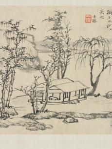 Artwork Page for Miniature Album with Figures and Landscape (Man and Woman)
