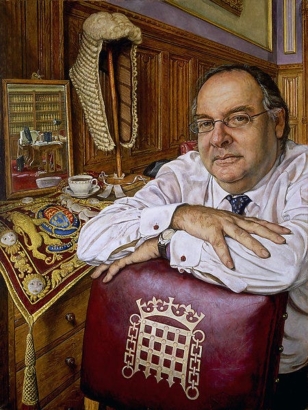 Figure 4. 2007 portrait of Baron Falconer of Thoroton, Lord Chancellor from 2003 to 2007, by English figurative painter Michael Taylor. Oil on canvas. Collection of the House of Lords of the UK Parliament