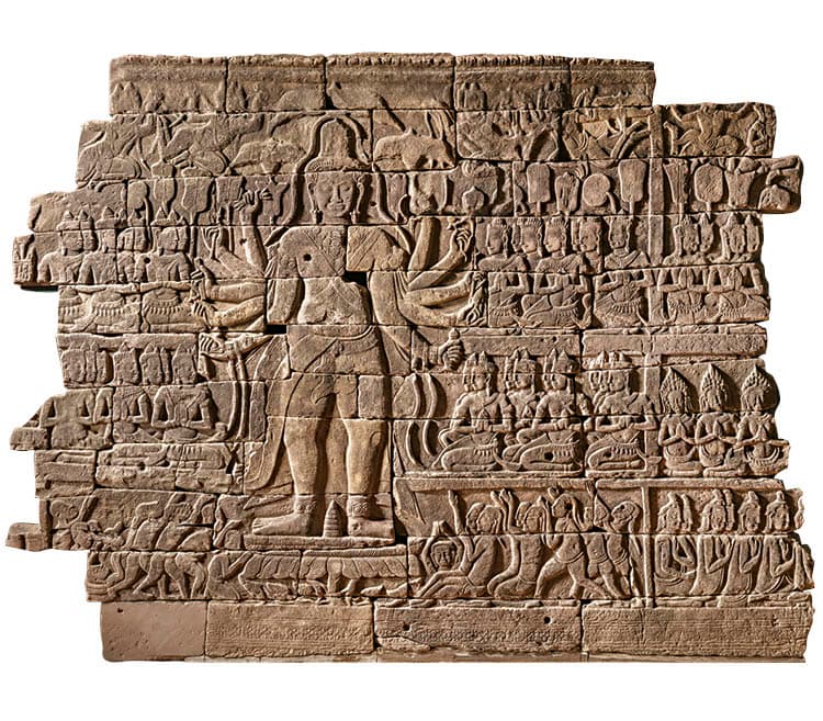 Bas-Relief with Ten-Armed Lokeshvara, c. 1200. Northwestern Cambodia, Banteay Chhmar, reign of Jayavarman VII. Sandstone; 53 blocks; total section averaging 275 x 325 x 22 cm. National Museum of Cambodia, Phnom Penh, Ka.2859. Photo: © The Cleveland Museum of Art, Howard Agriesti