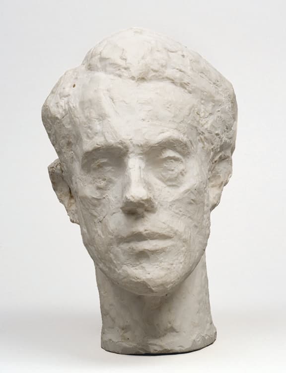 Giacometti sculpted a bust of Diego from plaster in 1936, at a time when he was working from live models. Diego’s features are realistic, with high cheekbones, an intense stare from heavily lidded eyes set in deep sockets, and a prominent, thin nose. Early in his career, Giacometti modeled in clay, and then created plaster casts from those models. In clay, he could build up the material and then work away at it with a knife or his hands, revealing facial features and the texture of hair and skin.