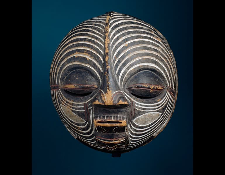 This striking mask by an unidentified artist of the Luba people of the Democratic Republic of the Congo is one of more than 2,000 African works gifted to the Seattle Art Museum by Cleveland native Katherine Coryton White in 1980. The Cleveland Museum of Art’s own African collection is also largely the result of Ms. White’s generosity, and this mask was first exhibited in the United States at the CMA in 1968. Published and exhibited repeatedly since its appearance in the first monograph on the Luba people in 1913, this is undoubtedly one of the most famous Central African masks to have survived in any public institution. Among the Luba people, the masks of the kifwebe type were primarily danced with during rituals celebrating the appearance of the new moon. These lunar references establish important connections with a Luba genre of female bowl-bearing figures, an exquisite example of which was acquired by the Cleveland Museum of Art in 2010. Interestingly, in 1937-38 the Seattle mask and the Cleveland figure were both included in a landmark retrospective exhibition on Congolese art in Antwerp, Belgium.