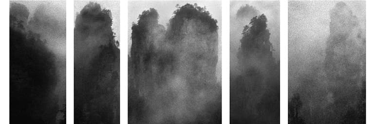 Five Peaks, 2009. Michael Cherney (American, b. 1969). Photographic prints on xuan paper; 84 x 128 in. Collection of the artist.
