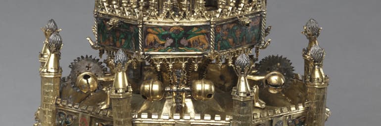 Table Fountain c. 1320–40 (detail). France, Paris. Gilt-silver and translucent enamel; 31.1 x 24.1 x 26 cm. Gift of J. H. Wade, 1924.859