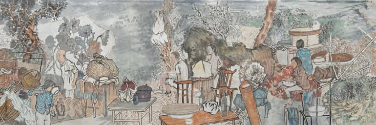 Ji Yun-Fei explores the tensions and contradictions between past and present, emphasizing how the past can serve as a repository of memory and experience and can reflect the present. His work incorporates elements of both history and fantasy to highlight modern society’s increasing detachment from ancient notions of harmonious human/nature relationships. It alludes to the worldwide, contemporary experience of human migration. In creating a narrative that addresses real and palpable concerns, he contests the power of the authorities to tell official stories.