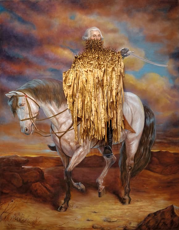 Shadows of Liberty 2016. Titus Kaphar (American, b. 1976). Oil and rusted nails on canvas; 274.3 x 213.4 cm. Yale University Art Gallery, Purchased with a gift from Ellen and Stephen Susman, BA 1962, 2017.67.1. © Titus Kaphar