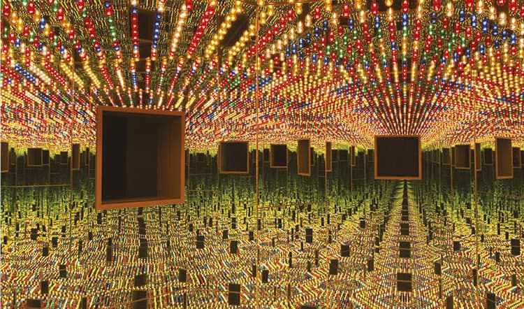 Installation view of Infinity Mirrored Room—Love Forever (1966/1994) at the Hirshhorn Museum and Sculpture Garden, 2017. Yayoi Kusama. Wood, mirrors, metal, lightbulbs. Collection of Ota Fine Arts, Tokyo/Singapore. © Yayoi Kusama. Photo by Cathy Carver
